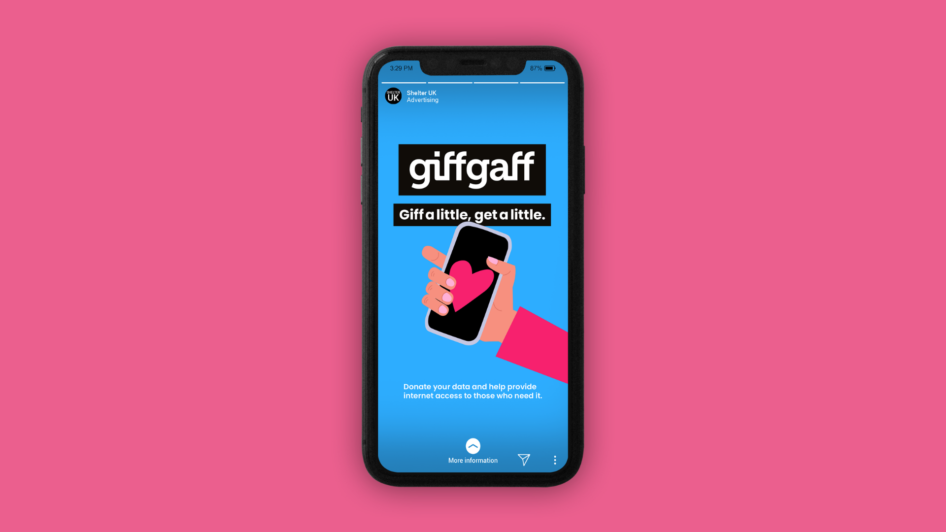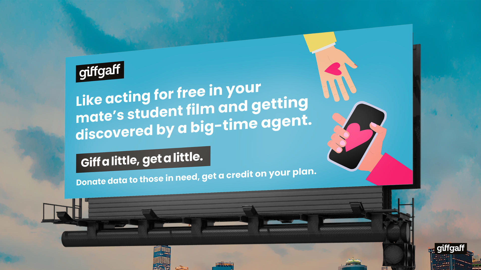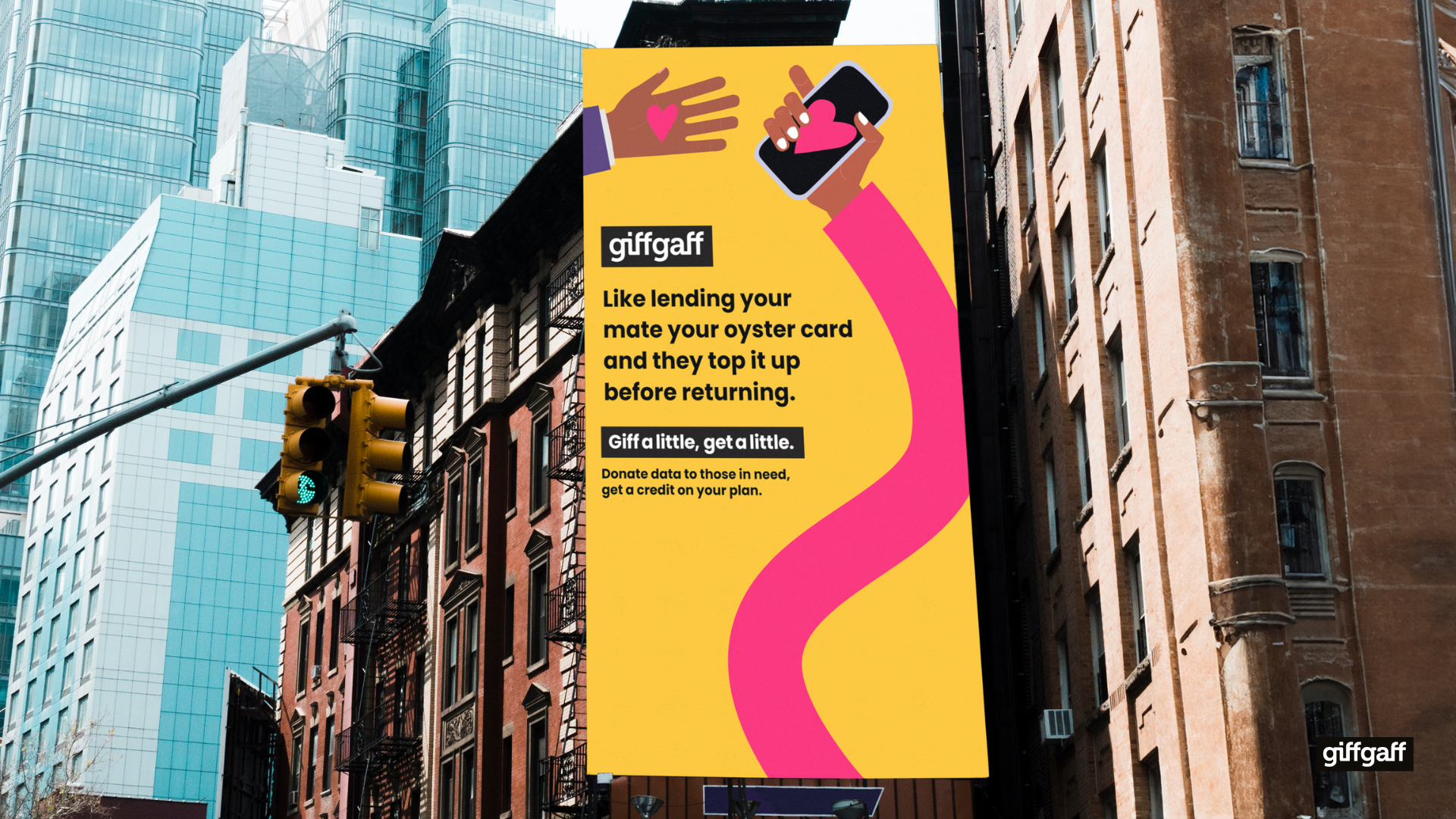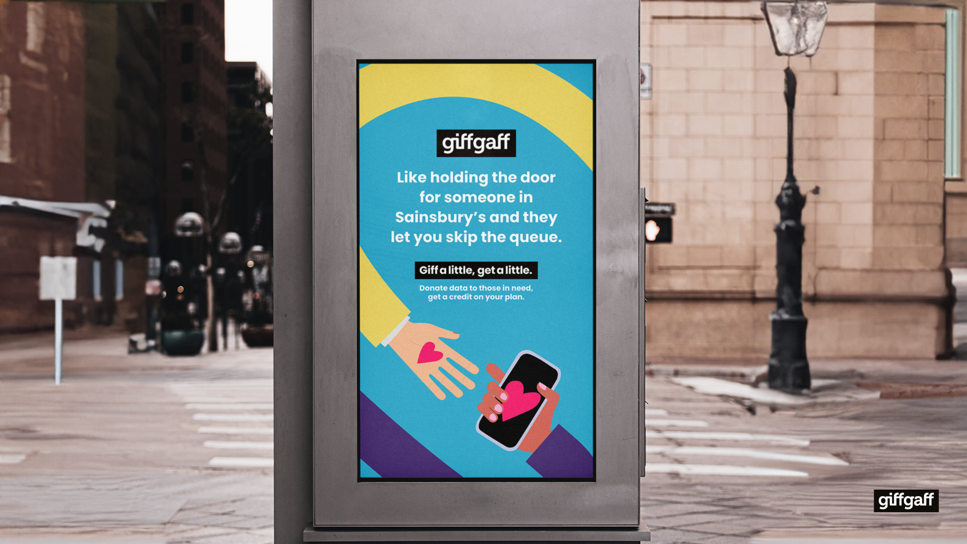 In 2024, 1.9 million UK households struggled to afford broadband internet. Low-income people are twice as likely to be offline. In an online world, digital poverty intensifies financial struggle. GiffGaff is launching #giffalittlegetalittle – Our members can donate unused mobile data and we’ll give them a credit on their plan. At GiffGaff, we know there’s no better feeling than to #giffalittlegetalittle.